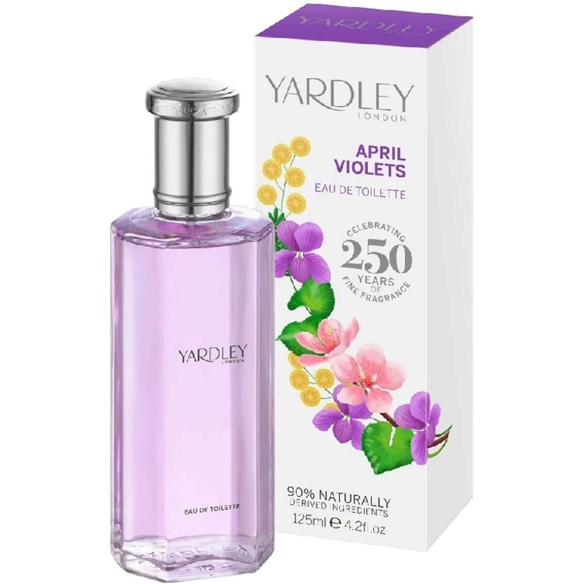 April Violets is a fresh floral fragrance by Yardley. It was released in 2015. The top notes are violet leaf and citruses. The middle notes are orris mimosa rose and white peach. The base notes are powdery notes vanilla and sandalwood